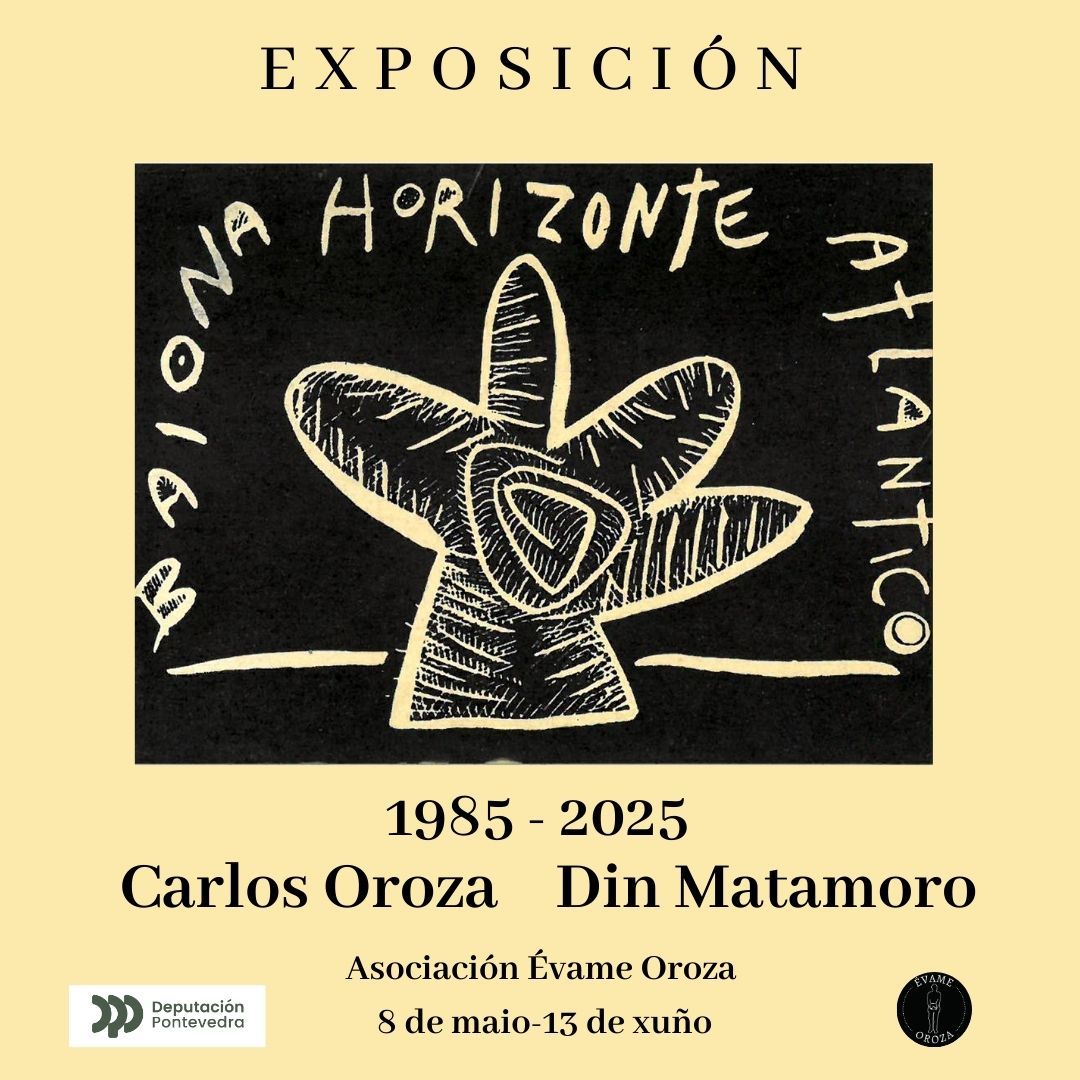 O xoves día 8 de maio inaugúrase en Évame Oroza a exposición “Baiona Horizonte Atlántico. 1985-2025” que recupera os orixinais da carpeta realizada no verán de 1985 con motivo da Exposición Happening que tivo lugar na finca “O Touzal”, en Baiona, na que confluíron os versos de Carlos Oroza coa pintura de Din Matamoro.