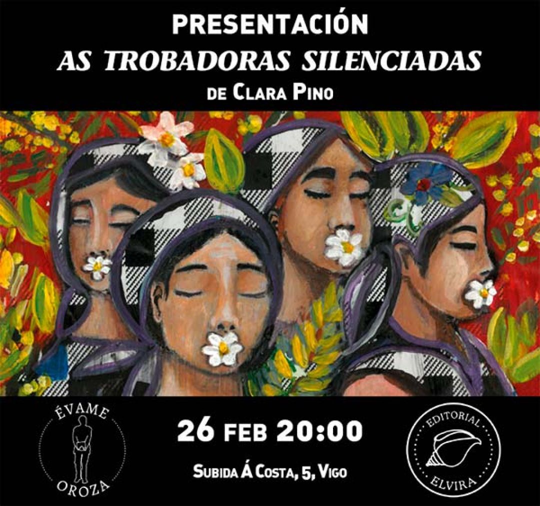O mércores 26 de febreiro (20:00 horas) celebrarase no noso local a presentación de “As trobadoras silenciadas”, de Clara Pino, poemario que vai acompañado polas marabillosas ilustracións de Ángeles Garrido. En “As trobadoras silenciadas” a autora fai unha homenaxe ás traballadoras que teceron a historia coa súa loita e esforzo. Ademais, no acto do mércores, Clara e Ángeles estarán acompañadas polo editor Xabier Romero e a escritora Clara do Roxo