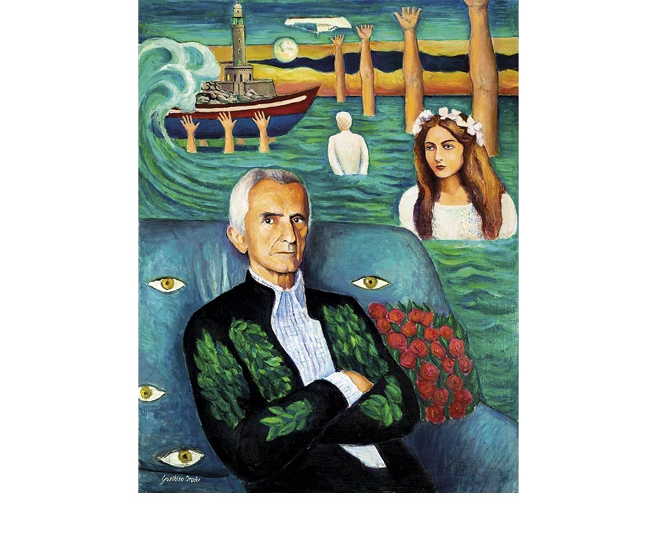 Retratos de Oroza, condecorado de musgo y heridas, exornado de mágicos símbolos y megueces del viento, observados por barcos iniciáticos, sirenas y puentes que sirven para caminar en el aire sin precipitarse al abismo. Y está Edgar Poe anunciando a Mallarmé y un mundo nuevo. Y Maeterlinck con su pájaro azul, su Nobel y su castillo, donde se oía una flauta de sonidos arcanos y magnéticos. Manos que crecen del agua, rosas, princesas, Kafka; Annabel Lee,cisnes y alas a punto de batir, druidas, princesas y música del vuelo de las aves y pájaros que inventa epinicios y cromías que aletean.